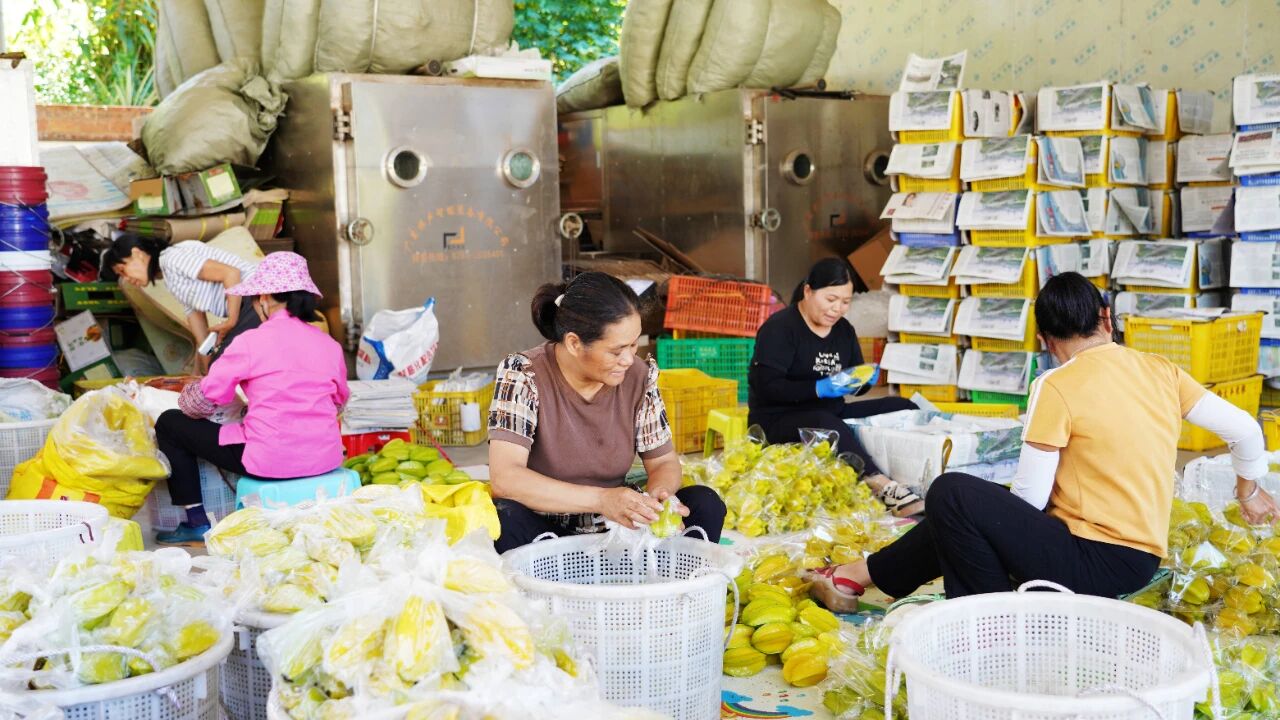 合作社工人對(duì)楊桃進(jìn)行分揀、打包;葜萑?qǐng)?bào)記者黃宇翔 通訊員龍融心 攝