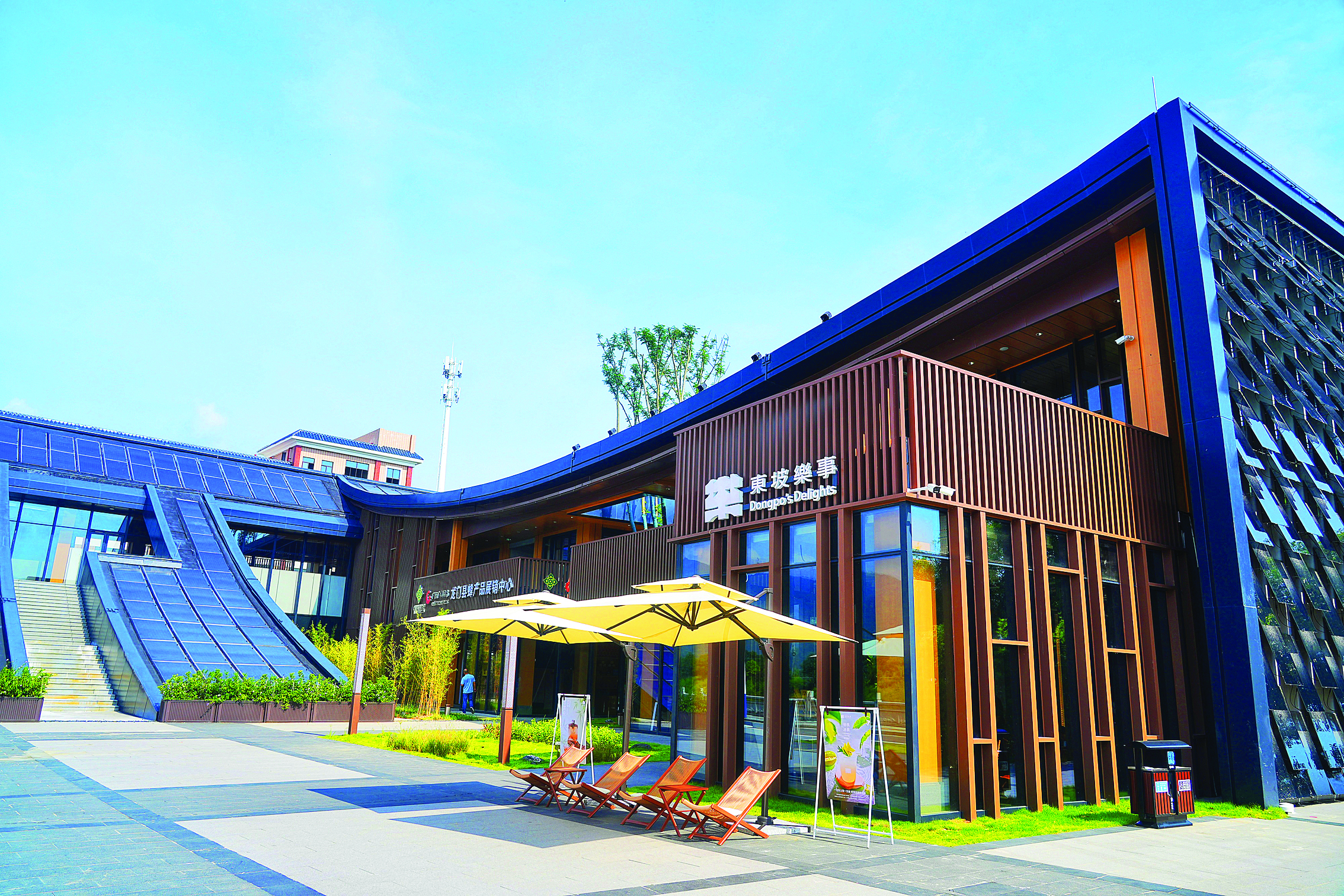 走進驛站內(nèi)部,更是處處藏著“東坡樂事”的巧思。一層的休閑區(qū)里,“花魁”“水拓長煙”等特色咖啡的香氣彌漫,不少游客坐在臨窗的位置,一邊啜飲咖啡,一邊欣賞窗外的河景!耙郧翱傆X得‘古榕聽琴’‘竹窗夜話’是詩詞里的場景,沒想到在這里能坐著喝咖啡、看河景,這種閑適感和詩里寫的一模一樣。”來自深圳的游客李女士舉著咖啡杯,笑著和同伴分享感受。