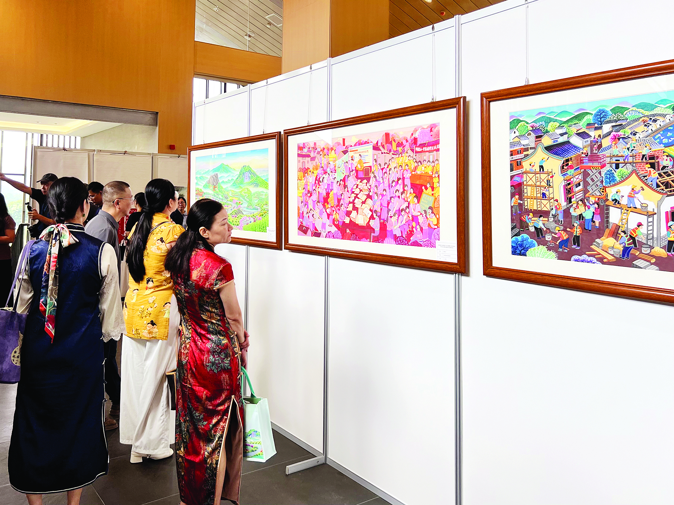 在驛站的二層,書畫攝影作品展讓人眼前一亮。展廳里陳列著多幅描繪龍門山水、永漢風(fēng)情的書畫作品!斑@些作品把永漢的美拍活了,我剛才已經(jīng)拍了好幾張,想發(fā)給朋友看看惠州的旅游新亮點。”來自潮汕的游客陳女士一邊參觀,一邊在展品前駐足拍照。