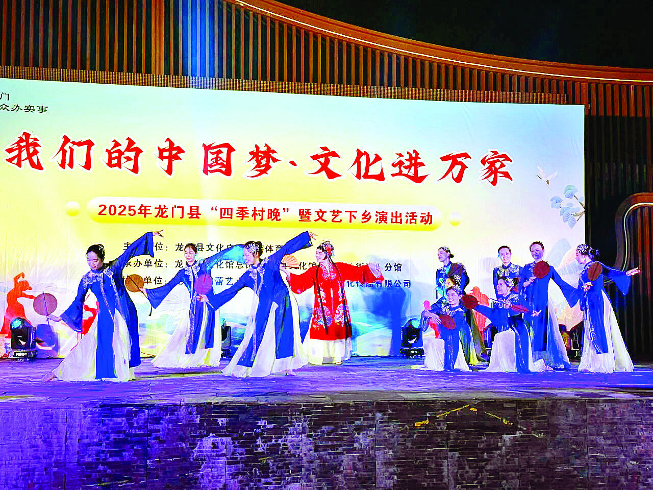 演出在洋溢青春激情的原創(chuàng)歌曲《向龍門出發(fā)》中拉開序幕。整場(chǎng)演出緊扣時(shí)代主題,通過歌舞、器樂演奏、獨(dú)唱等藝術(shù)形式,生動(dòng)展現(xiàn)了龍門在推動(dòng)鄉(xiāng)村振興中取得的成果,讓時(shí)代精神在歡聲笑語中深入人心。