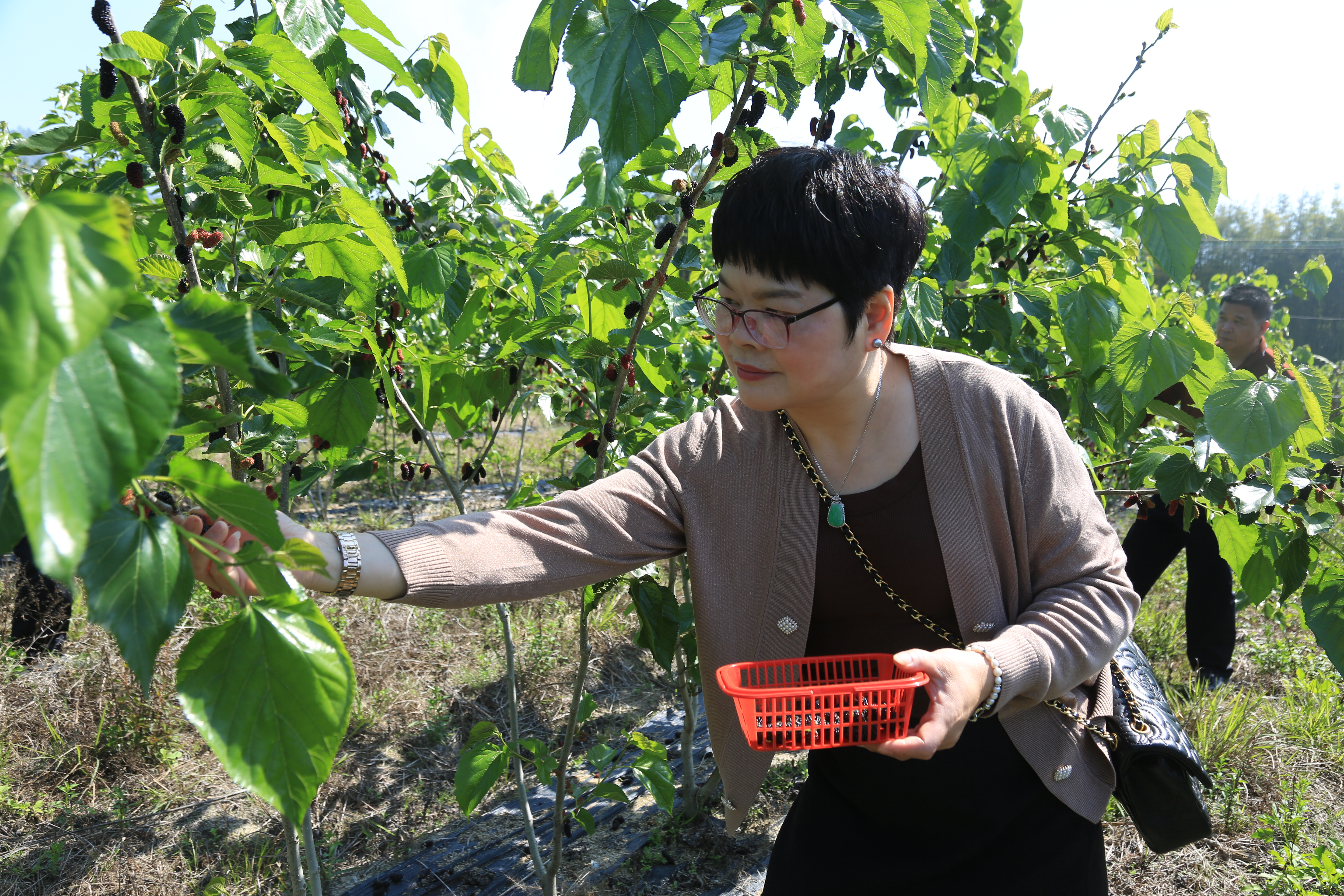 游客沉浸式體驗(yàn)采摘桑葚。 惠州日?qǐng)?bào)記者黃宇翔 特約通訊員黃偉光 攝
