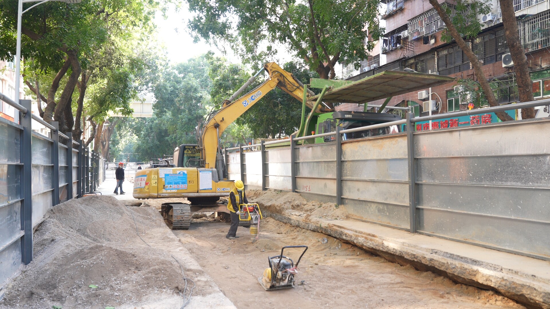 距離病害修復(fù)項(xiàng)目6公里的西湖環(huán)湖污水管網(wǎng)改造工程(以下簡稱“環(huán)湖污水管網(wǎng)改造”)龍豐路施工現(xiàn)場,轟鳴聲此起彼伏,一派熱火朝天的施工場景。