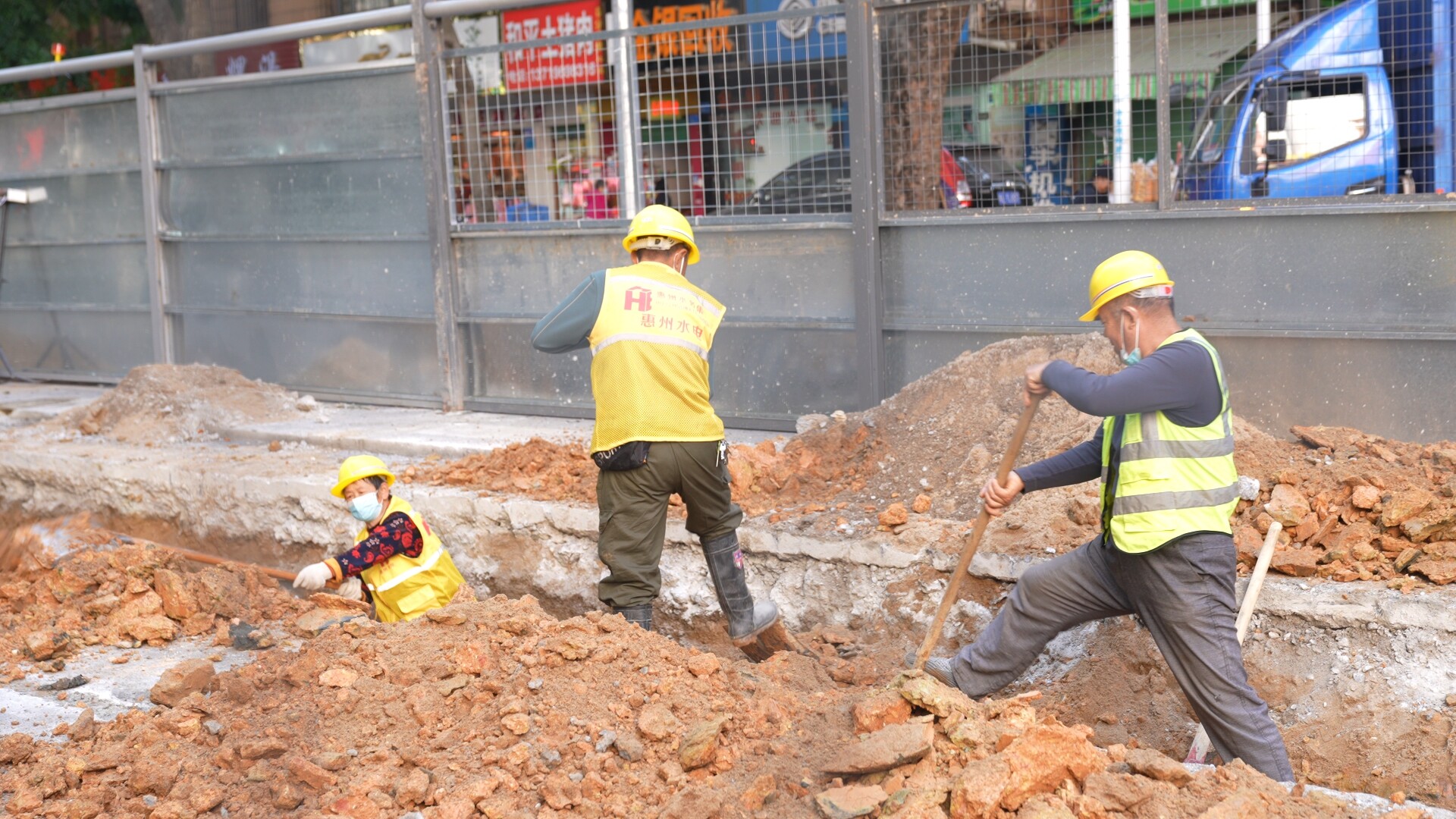 寒冬時(shí)節(jié),走進(jìn)惠城中心區(qū)排水主管網(wǎng)病害修復(fù)項(xiàng)目(以下簡稱“病害修復(fù)項(xiàng)目”)文華一路施工現(xiàn)場,轟鳴的機(jī)械聲,微微振動的地面,訴說著這里的繁忙。