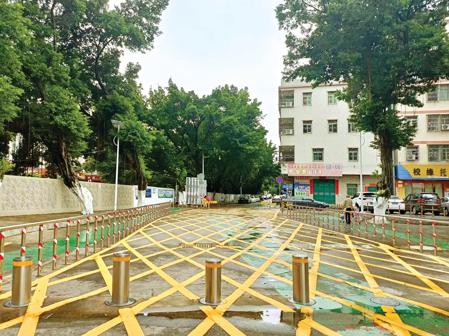 市八中,校門兩側(cè)人行道上的停車位消失了,變回一條暢通整潔的人行通道;市五中,校門口旁社會停車位改為學(xué)生接送專用通道,占道的設(shè)施移除了,人行道紅綠燈通行時間延長了,師生通行更加安全有序;仲愷陳江小學(xué),主干道違停堵路、操場邊高空拋物問題解決了,學(xué)校周邊環(huán)境變得整潔安全……