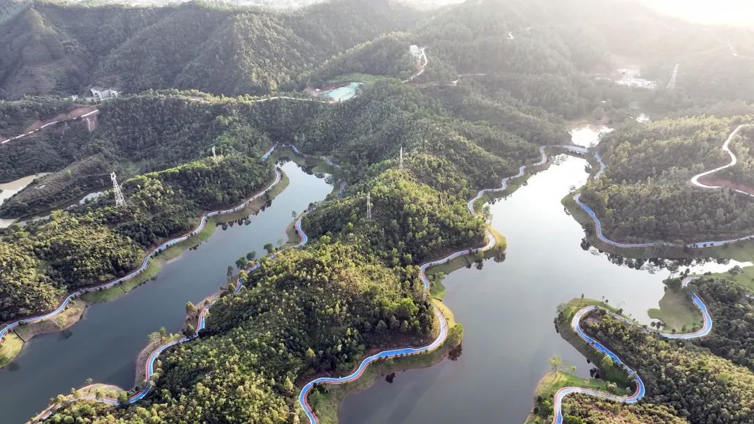在日常生活中,塑膠跑道并不稀罕,熒光物質(zhì)也很常見(jiàn)。但是,當(dāng)塑膠跑道遇見(jiàn)熒光,會(huì)碰撞出怎樣的火花呢?惠州水務(wù)集團(tuán)綠水投資有限公司(以下簡(jiǎn)稱(chēng)“綠水公司”)環(huán)激流坑水庫(kù)建設(shè)的熒光碧道給出了答案。