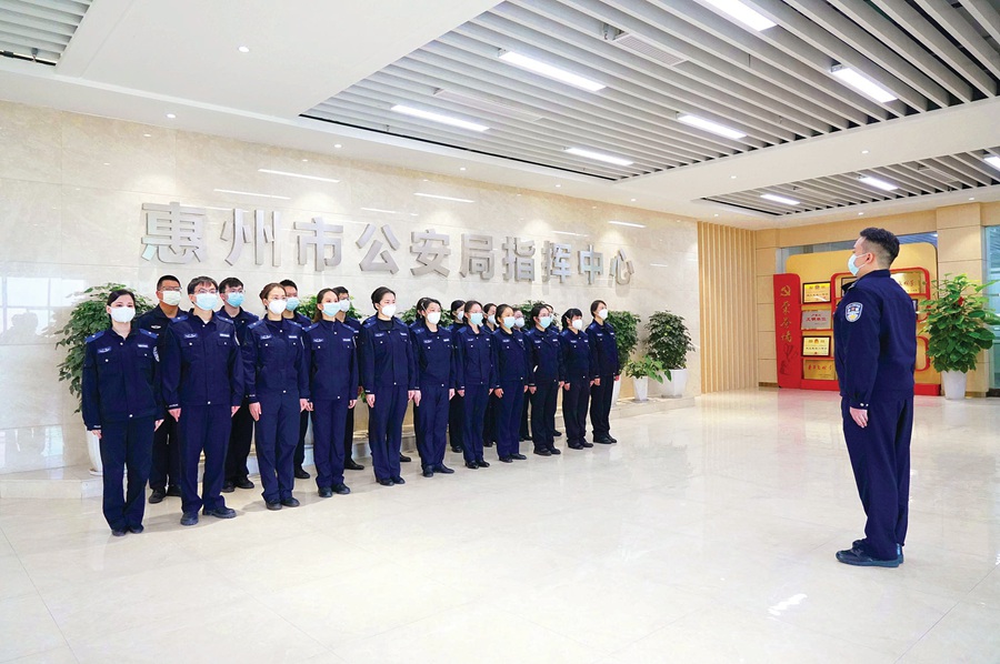“惠州公安110”接警交接班;葜萑請笥浾邨罱I(yè) 攝