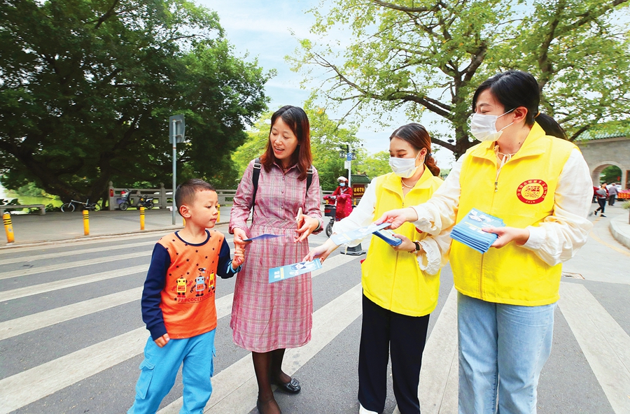 志愿者在市區(qū)宣傳《惠州市文明行為促進條例》;葜萑請笥浾哏姇承 攝