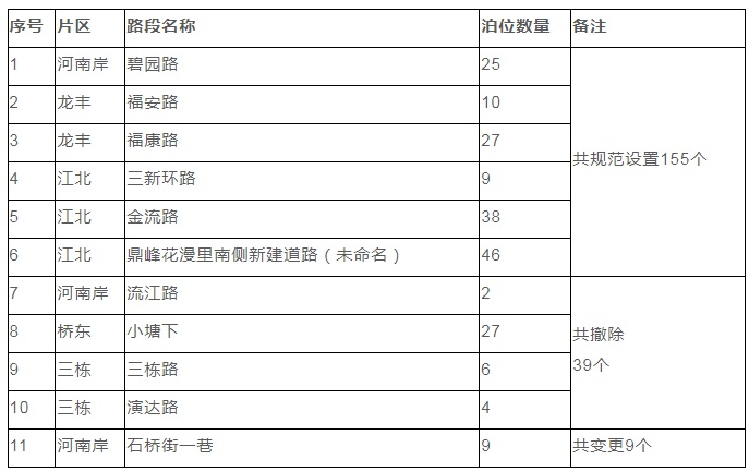 市中心城區(qū)路內(nèi)停車泊位調(diào)整明細(xì)表