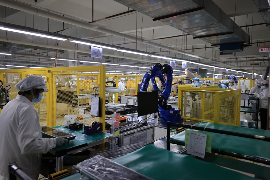 華陽集團的自動化生產(chǎn)車間;葜輬髽I(yè)全媒體記者王建橋攝