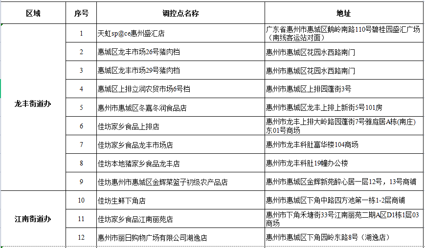 據(jù)介紹,50個調控點分別由市肉聯(lián)廠有限公司、佳坊農產品有限公司、麗日購物廣場、天虹商場、匯綠鮮果蔬農民專業(yè)合作社等企業(yè)承擔政府調控豬肉具體銷售工作。屆時,各調控點將會在適當位置懸掛“2023年春節(jié)期間政府價格惠民豬肉調控點”橫幅以及張貼“政府價格惠民豬肉調控價目表”。