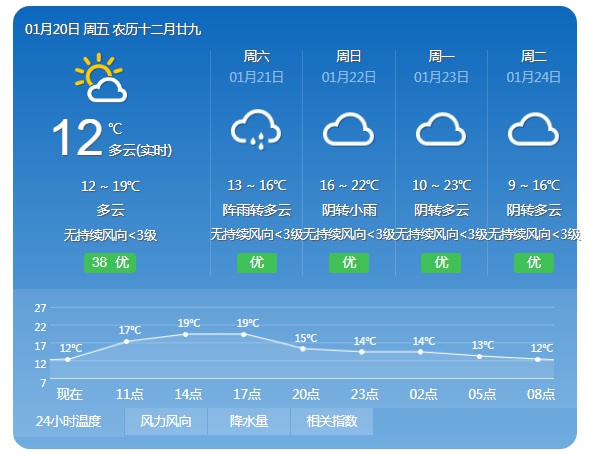 26-27日(初五至初六)多云為主,最高氣溫回升到20℃左右。