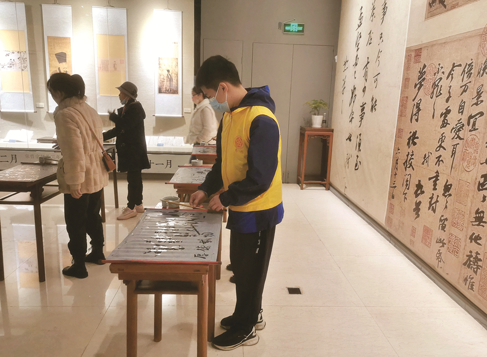 在特展廳中,市博物館還設(shè)有書法互動(dòng)場(chǎng)景,方便市民現(xiàn)場(chǎng)臨摹“東坡體”,以書法藝術(shù)傳承東坡文化。書法臨摹現(xiàn)場(chǎng),不時(shí)看到志愿者的身影。來自惠陽(yáng)高級(jí)中學(xué)初中部的3位同學(xué)參加了這次特展的志愿者服務(wù)活動(dòng),他們負(fù)責(zé)維持現(xiàn)場(chǎng)秩序和講解工作。小志愿者們告訴記者,通過這次社會(huì)實(shí)踐活動(dòng),沉浸式感受惠州深厚的文化底蘊(yùn),對(duì)自己是一次很好的鍛煉。