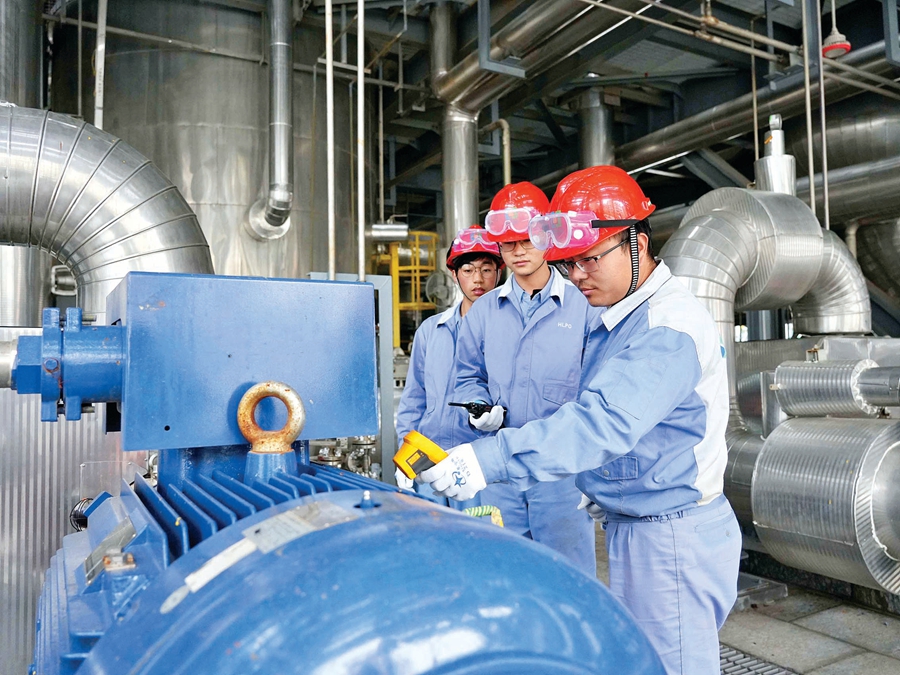 大年初五下午4時許,恒力石化(惠州)有限公司生產(chǎn)部氧化二車間乙班班長呂東龍帶著班員穿梭在裝置區(qū)的廊道及設(shè)備間開展巡檢,手中的測溫儀、測振儀是他們巡檢的“裝備”。管線有無泄露、腐蝕,設(shè)備運轉(zhuǎn)發(fā)出的聲音、溫度是否正常,聞到的氣味里是否有異常等等,經(jīng)驗豐富的他們第一時間就可以察覺,然后再通過設(shè)備檢測得出準確數(shù)據(jù)。