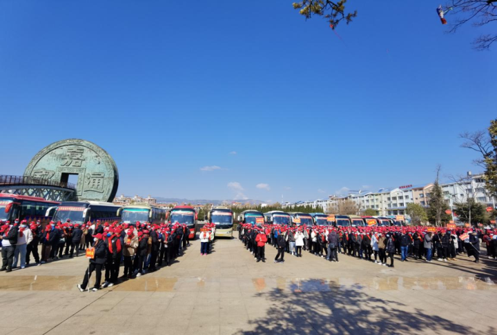節(jié)后返崗?fù)殡S著春運(yùn)高峰,火車票、高鐵票“一票難求”的現(xiàn)象普遍。如果員工不能按時返崗,企業(yè)不僅難以安排生產(chǎn)計劃,甚至將影響訂單的準(zhǔn)時交付。為保障企業(yè)用工,做好返鄉(xiāng)員工返崗服務(wù),惠州市人社局提早謀劃,節(jié)前與云南省就業(yè)局聯(lián)系組織專列事宜。為確保首趟返崗專列順利發(fā)車,惠州市人社局吳嘉明局長于1月28日(春節(jié)假期后上班第一天)帶隊先行趕赴云南昆明對接工作細(xì)節(jié)。初九早上7時許,惠州市人社局與云南省就業(yè)局在昆明會澤縣舉行了云南省2023年農(nóng)村勞動力轉(zhuǎn)移就業(yè)集中輸出歡送儀式,簡短而莊重的儀式結(jié)束后,專列正式啟程。