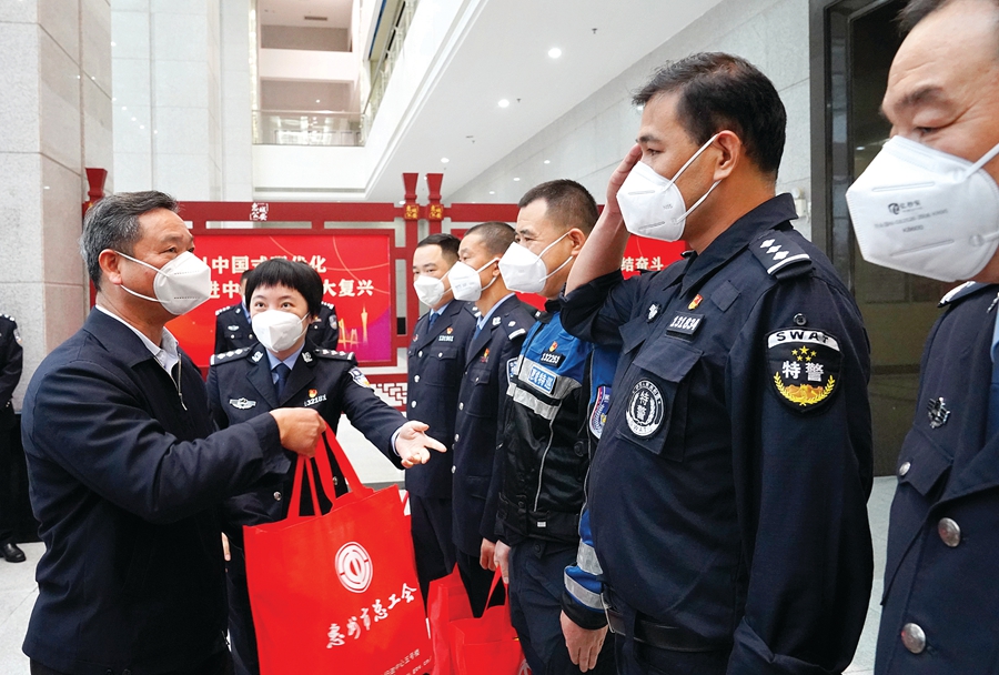 送溫暖是工會(huì)組織竭誠服務(wù)職工群眾的傳統(tǒng)品牌活動(dòng)。黃建偉介紹,此次市總工會(huì)共安排288.5萬元專項(xiàng)經(jīng)費(fèi),對困難職工、勞動(dòng)模范、1~4級(jí)工傷職工、一線公安干警、新業(yè)態(tài)勞動(dòng)者、環(huán)衛(wèi)工人、建筑工人、保安人員及疫情期間堅(jiān)守在崗位的一線職工開展送溫暖慰問活動(dòng);ㄉ汀⒋竺、年貨糖果等慰問禮包送來了黨和政府的關(guān)心,親切的交流、暖心的問候送來了工會(huì)組織的關(guān)愛,廣大職工群眾在歡度新春佳節(jié)之際深深感受到來自黨和政府的絲絲溫暖。