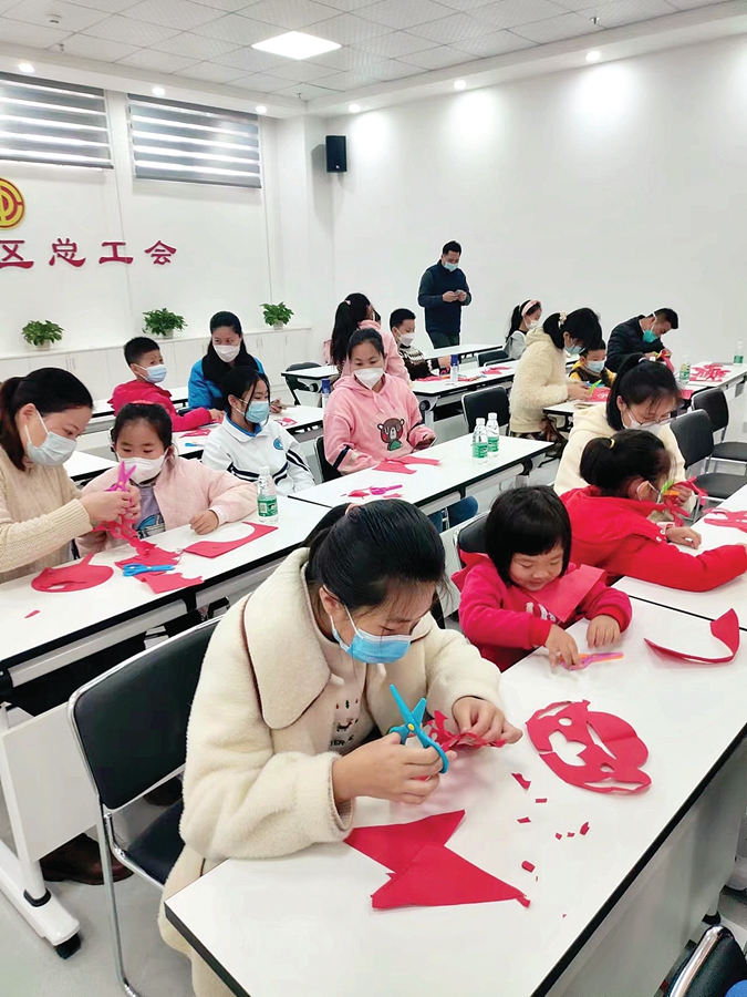 大亞灣區(qū)總工會(huì)在職工服務(wù)中心舉辦了“凝心聚力揚(yáng)新帆·年味送!ぁ恪被顒(dòng)。這是其中的“剪紙窗花賀新年”職工親子剪紙活動(dòng)現(xiàn)場。