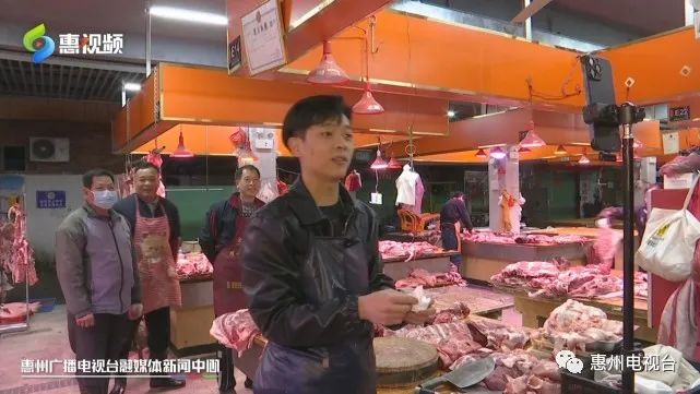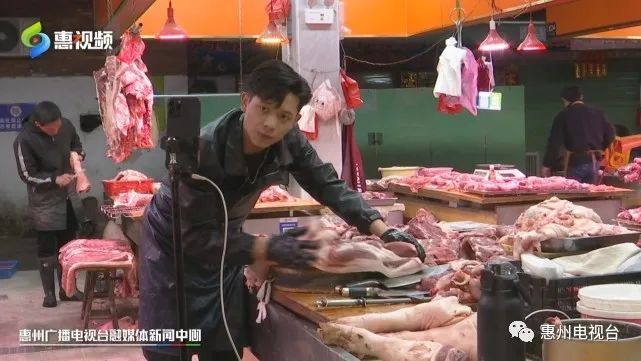 凌晨3點半,城市還在睡夢中,博羅縣龍溪街道中心市場已經(jīng)熱鬧非凡,大家都在忙著上貨。肉檔區(qū)里燈火通明,各個檔主把新鮮屠宰的整豬按照部位、肉質(zhì)、種類等要求進行分割,方便市民選購。在這里,記者見到了網(wǎng)紅名人“佩奇哥”。其他檔主都是埋頭苦干,而佩奇哥則是一邊干活一邊開著直播講解,時不時拿起一塊豬肉向直播間的粉絲展示,可手中的活兒一點也沒落下。