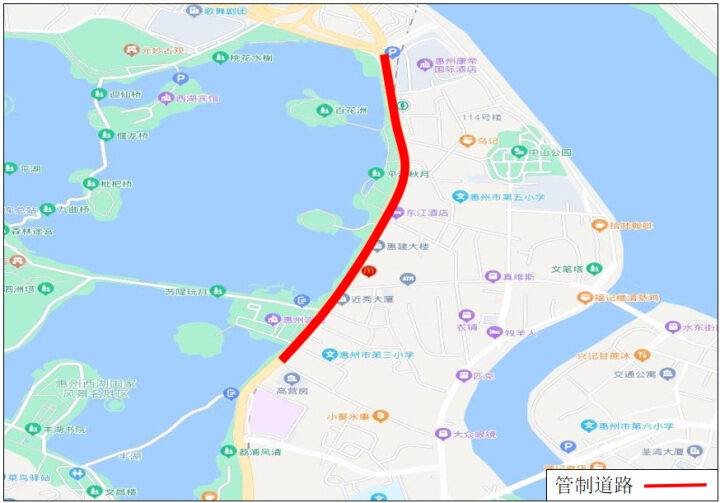 惠州交警提醒,請(qǐng)廣大市民選擇適當(dāng)時(shí)間和路線出行,途經(jīng)臨時(shí)交通管制路段時(shí)按照交通標(biāo)志指引和現(xiàn)場(chǎng)交通民警指揮繞行。