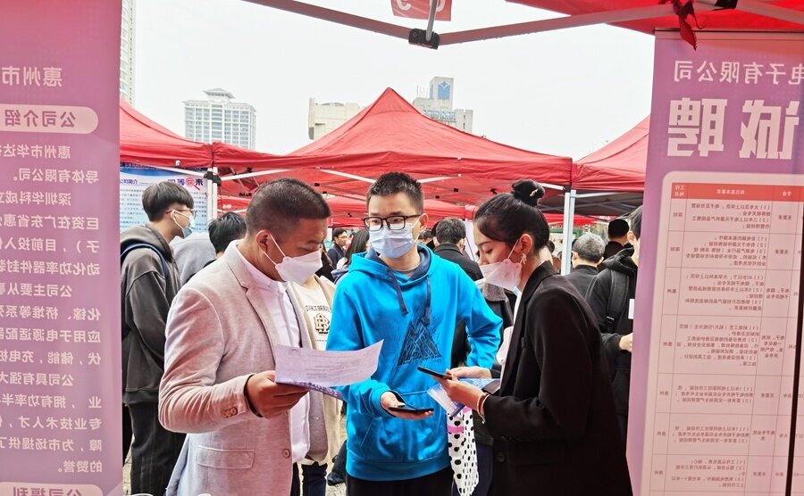 “活動通知說是9點開始,我們8點40分就布置好了攤位!笨祷(惠州)半導體有限公司人事經理邱玉萍說,“我們剛把招聘海報擺出來,求職者就絡繹不絕前來咨詢。”一個上午,邱玉萍共收到了近百份求職者的簡歷,“有一部分達成了初步意向,接下來會進一步篩選!鼻裼衿冀榻B,公司有線下和線上兩種招聘方式,但是相比線上招聘,現(xiàn)場招聘會不用隔著冷冰冰的屏幕,可以與求職者進行面對面溝通,更直觀親近,有助于促進雙方了解。