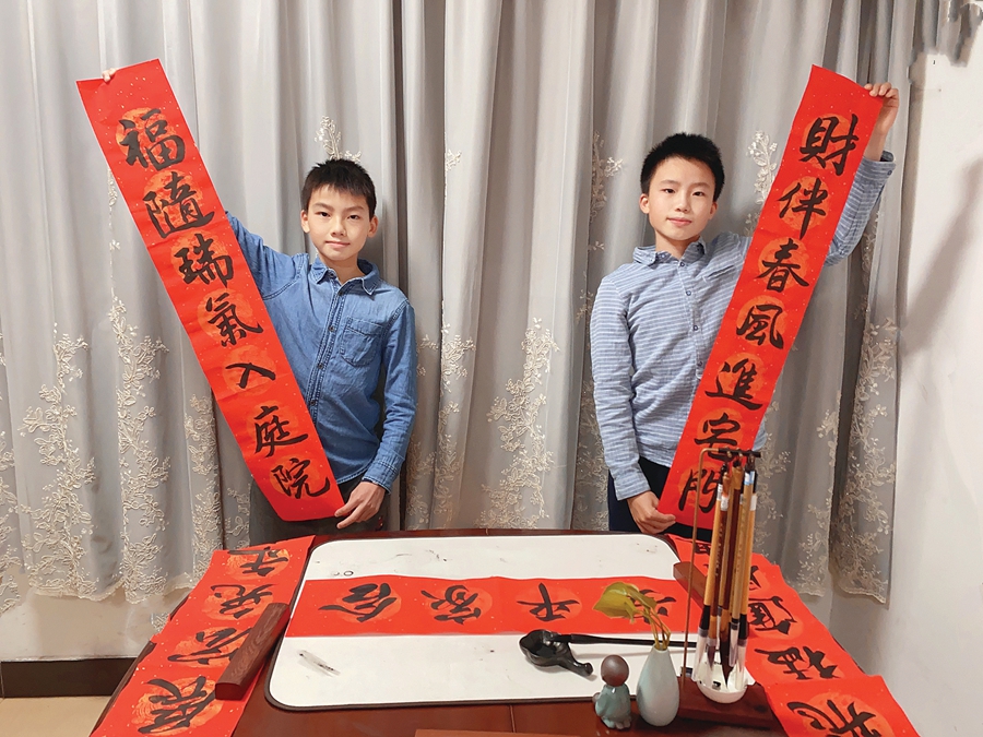 嚴(yán)永怡和嚴(yán)恒怡是雙胞胎,均就讀于惠州市麥地小學(xué)六(5)班。他們在春節(jié)前寫了20多副對聯(lián),送給同學(xué)和親戚朋友。