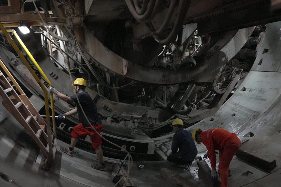 施工人員在盾構(gòu)隧道內(nèi)作業(yè);葜萑請(bào)記者楊建業(yè) 攝
