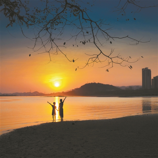 江邊總是人們愛到的地方。閑暇之余,于傍晚移步江邊,于藍(lán)色天穹下,經(jīng)行草間竹間樹間,江風(fēng)撲面,花香襲人,時或郁結(jié)的心,散步時總覺得無限暢快。歌唱家張也演唱的一首《多情東江水》,就抒發(fā)了人們對東江的滿心感激。江河的景色,總能陶冶人的性情,拓展人的胸襟。