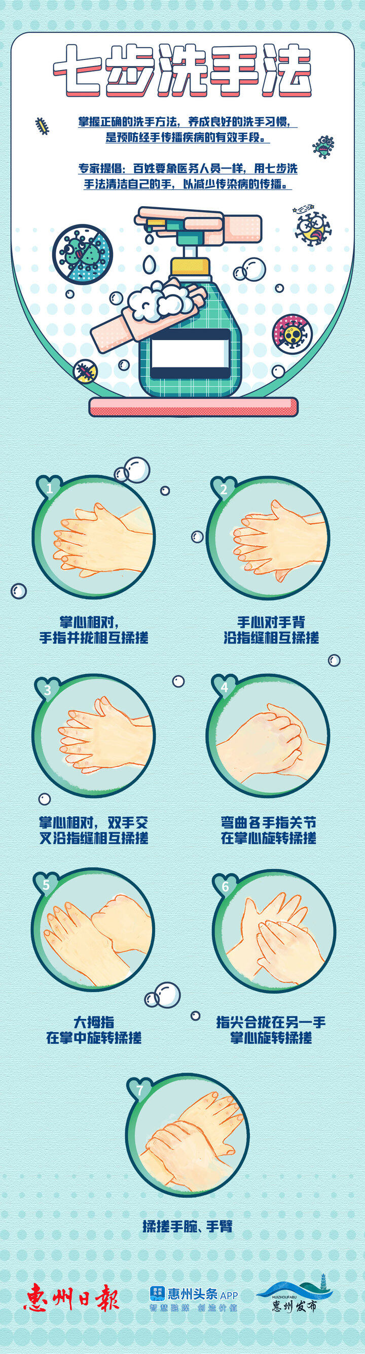 “保持良好的手衛(wèi)生,是預(yù)防諾如病毒感染和控制諾如病毒傳播最重要和最有效的措施!被葜菁部靥嵝汛蠹乙B(yǎng)成良好的飲食衛(wèi)生習(xí)慣,生吃瓜果要洗凈,多喝開水才健康,不食生冷半熟品。保持良好的手衛(wèi)生,飯前便后要洗手,牢記七步洗手法。同時,盡量避免前往人群密集的場所,多鍛煉身體。值得注意的是,酒精對諾如病毒無效,含氯消毒劑對諾如病毒最有效。