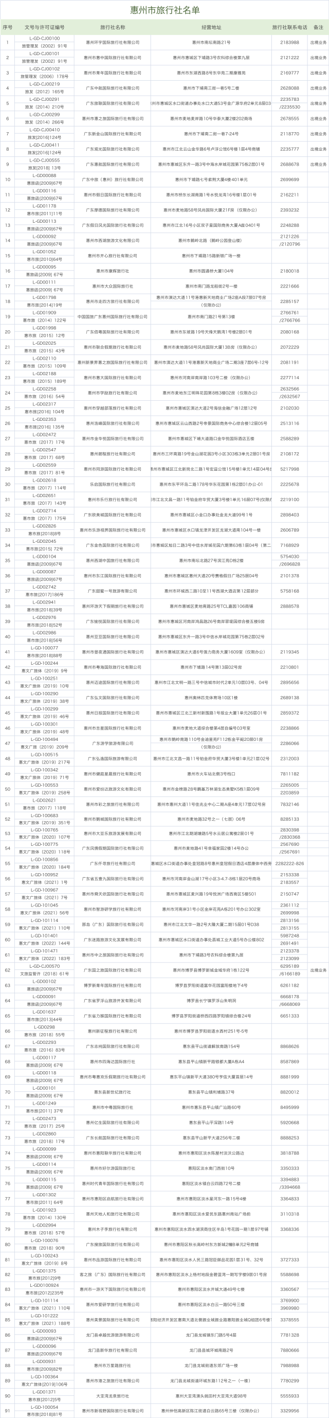 記者了解到,目前,在惠州市文化廣電旅游體育局市場(chǎng)管理科登記備案的旅行社共有91家,具備經(jīng)營(yíng)出境業(yè)務(wù)資質(zhì)的僅10家。廣大市民朋友出境旅游要選擇有合法資質(zhì)的旅行社,并簽訂正規(guī)旅游合同,索要發(fā)票,在旅游中遇到糾紛要及時(shí)咨詢或向文旅部門投訴。