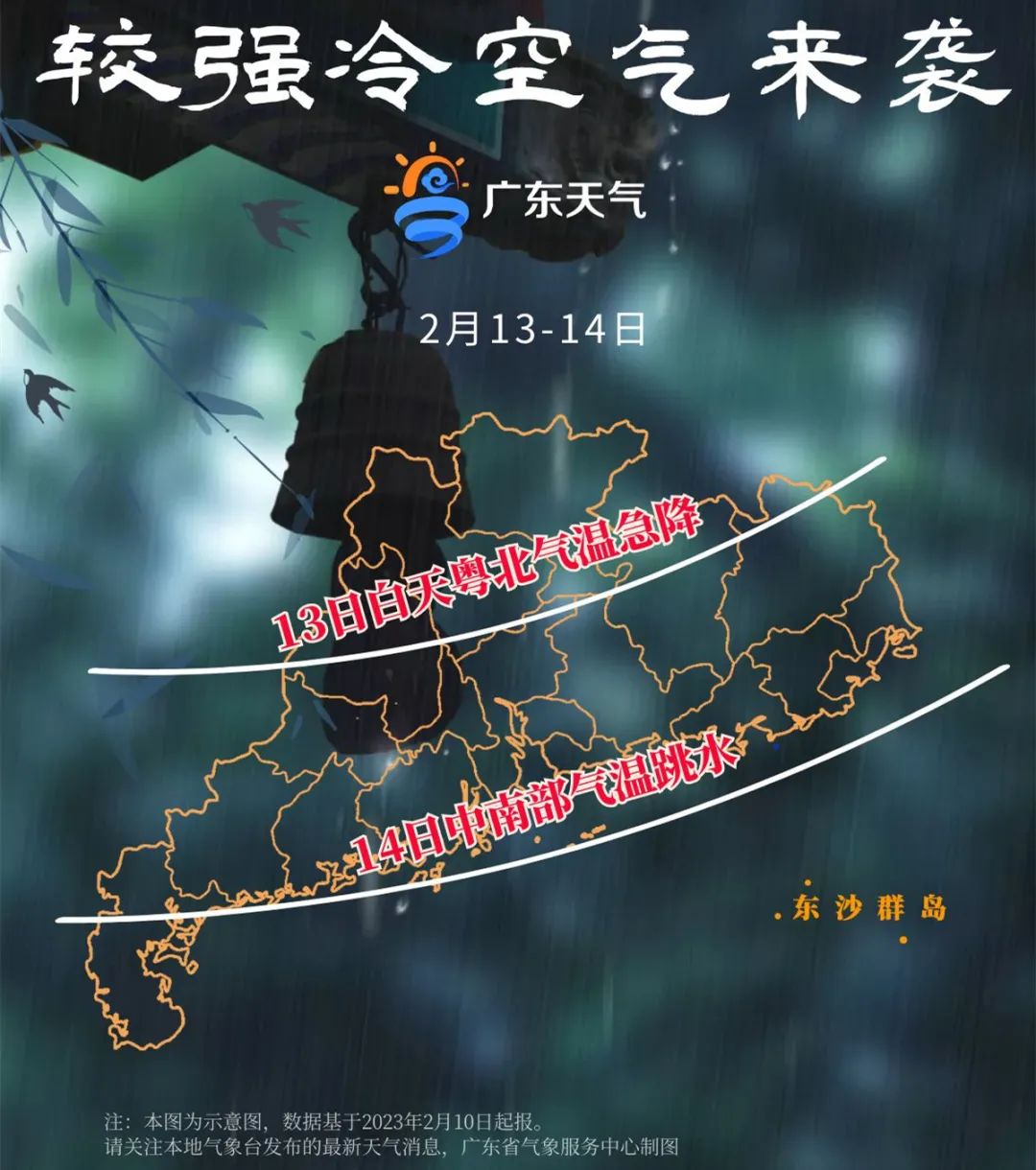 13日夜間起冷空氣到達廣東中南部。