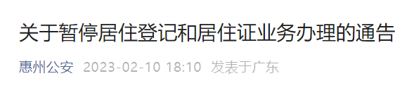 為做好新版流動人口居住證管理系統(tǒng)上線工作,按照省公安廳工作部署,于2023年2月11日12:00至2023年2月16日00:00停機進行系統(tǒng)后臺數(shù)據(jù)轉(zhuǎn)換,期間,全市戶政窗口將暫停居住登記、居住證辦理等業(yè)務(wù)。請廣大市民群眾合理安排時間,以防造成不便。咨詢電話:0752-2829924。