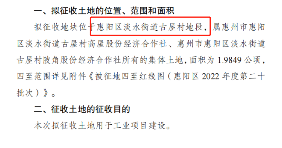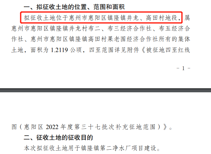 擬征收土地位于惠城區(qū)水口街道蓬陵村,面積約1.3畝(具體范圍和面積以實際勘測定界結(jié)果為)。