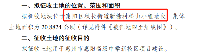 惠州市惠陽高級中學(xué)新校區(qū)項目預(yù)征收土地