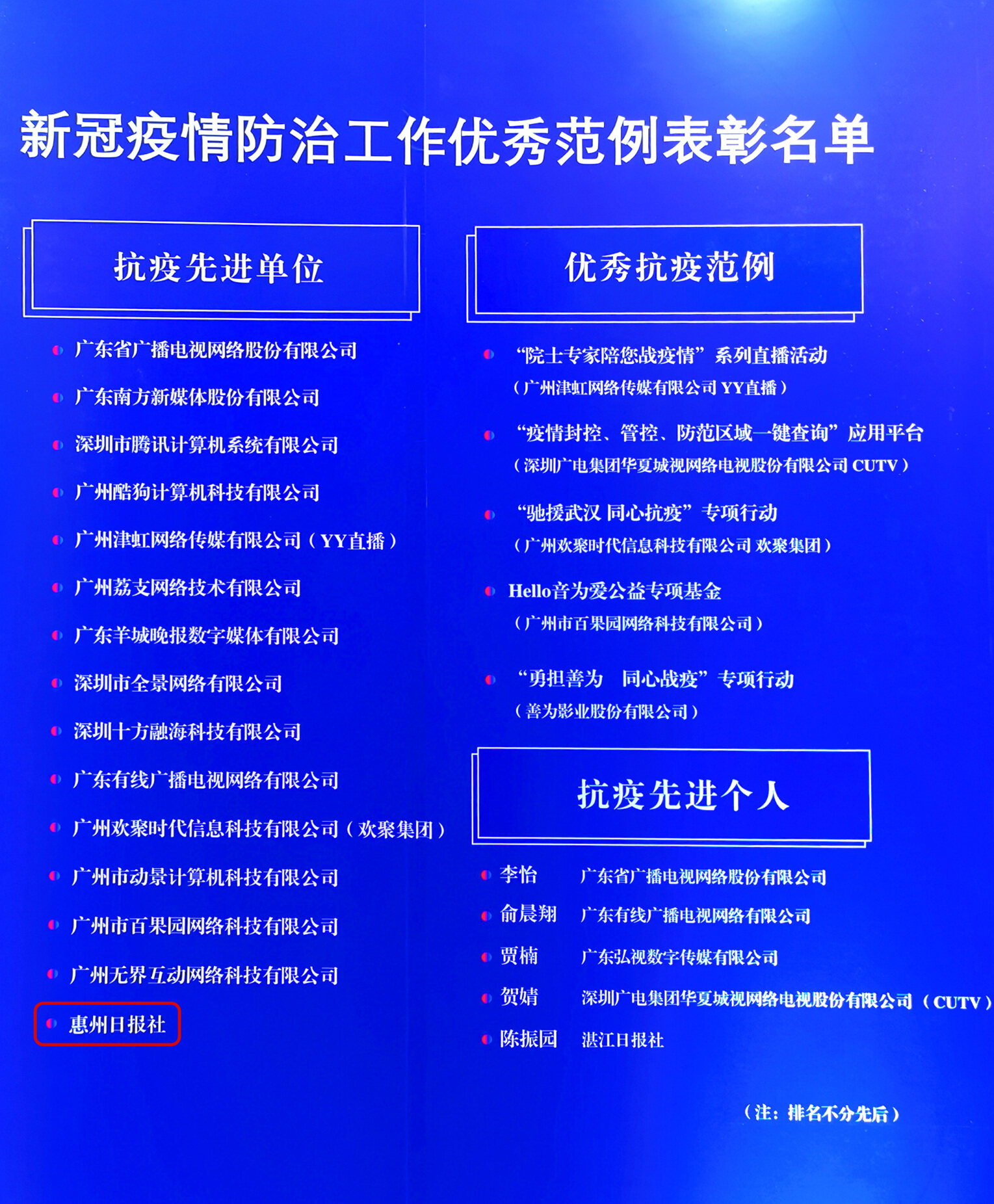 惠州日報社獲評為“抗疫先進(jìn)單位”