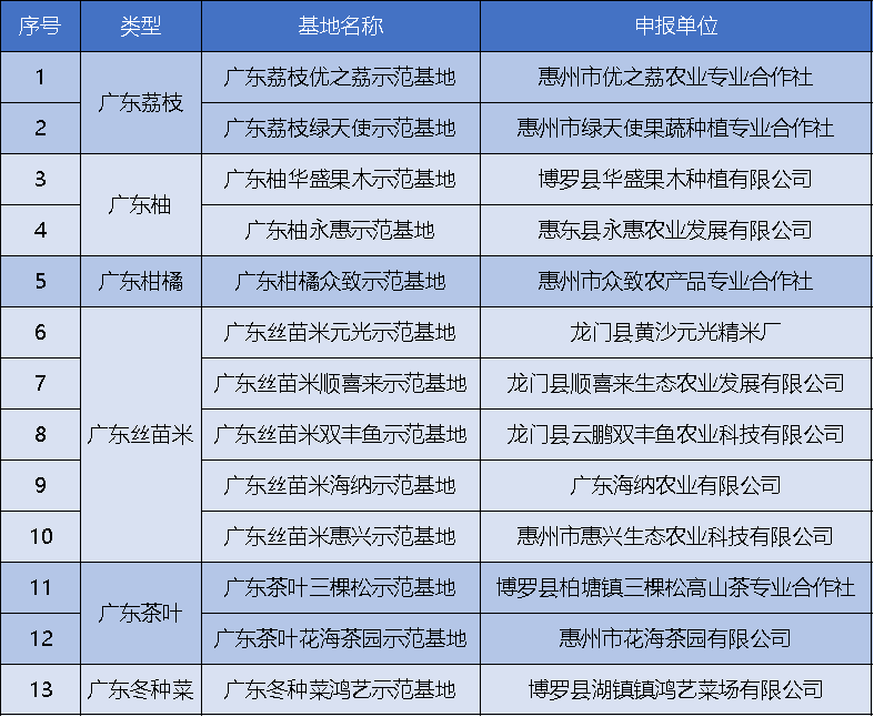 惠州13家基地入選 “粵字號”農(nóng)業(yè)品牌示范名單。
