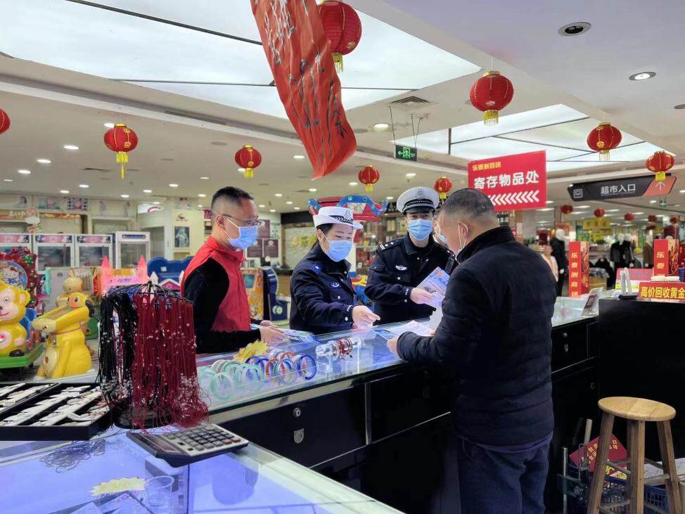 惠州交警深入商場(chǎng)等公共場(chǎng)所宣傳交通安全。