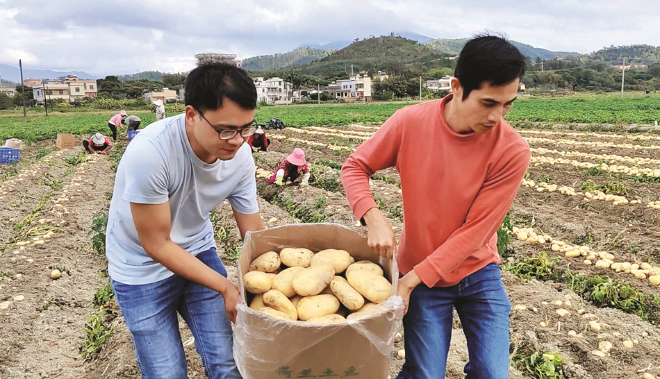 揭膜、分揀、裝箱、打包、稱重、上車……日前,惠東縣稔山鎮(zhèn)五配村百畝連片冬種馬鈴薯示范基地里熱鬧不已。這片基地由惠州市農(nóng)業(yè)科學(xué)研究所與惠州市惠和山農(nóng)業(yè)發(fā)展有限公司合作建立,是馬鈴薯新品種“坤元9號”示范種植點,經(jīng)現(xiàn)場抽樣測產(chǎn),畝產(chǎn)達3120公斤,實現(xiàn)豐產(chǎn)“四連勝”;葜萑請笥浾邉⒔ㄍ 通訊員湯倩 攝