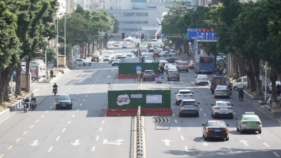 隨后,記者來到麥地路國華商務(wù)中心路段看到,路面中間有兩個(gè)圍蔽施工點(diǎn),雖然車流量較大,但圍蔽施工在非上下班高峰時(shí)段并沒有帶來明顯的交通擁堵。