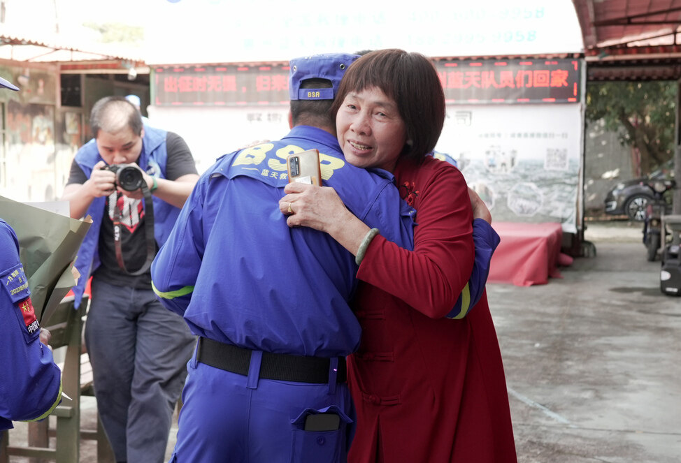 兒行千里母擔(dān)憂。當(dāng)天下午,惠州市藍(lán)天救援志愿者協(xié)會(huì)會(huì)長利立然父母特意從河源趕到惠州迎接?粗仍(duì)隊(duì)員一個(gè)個(gè)安全回惠,利立然母親紅著眼眶,激動(dòng)地上前與隊(duì)員們一一相擁,“平安回來就好!