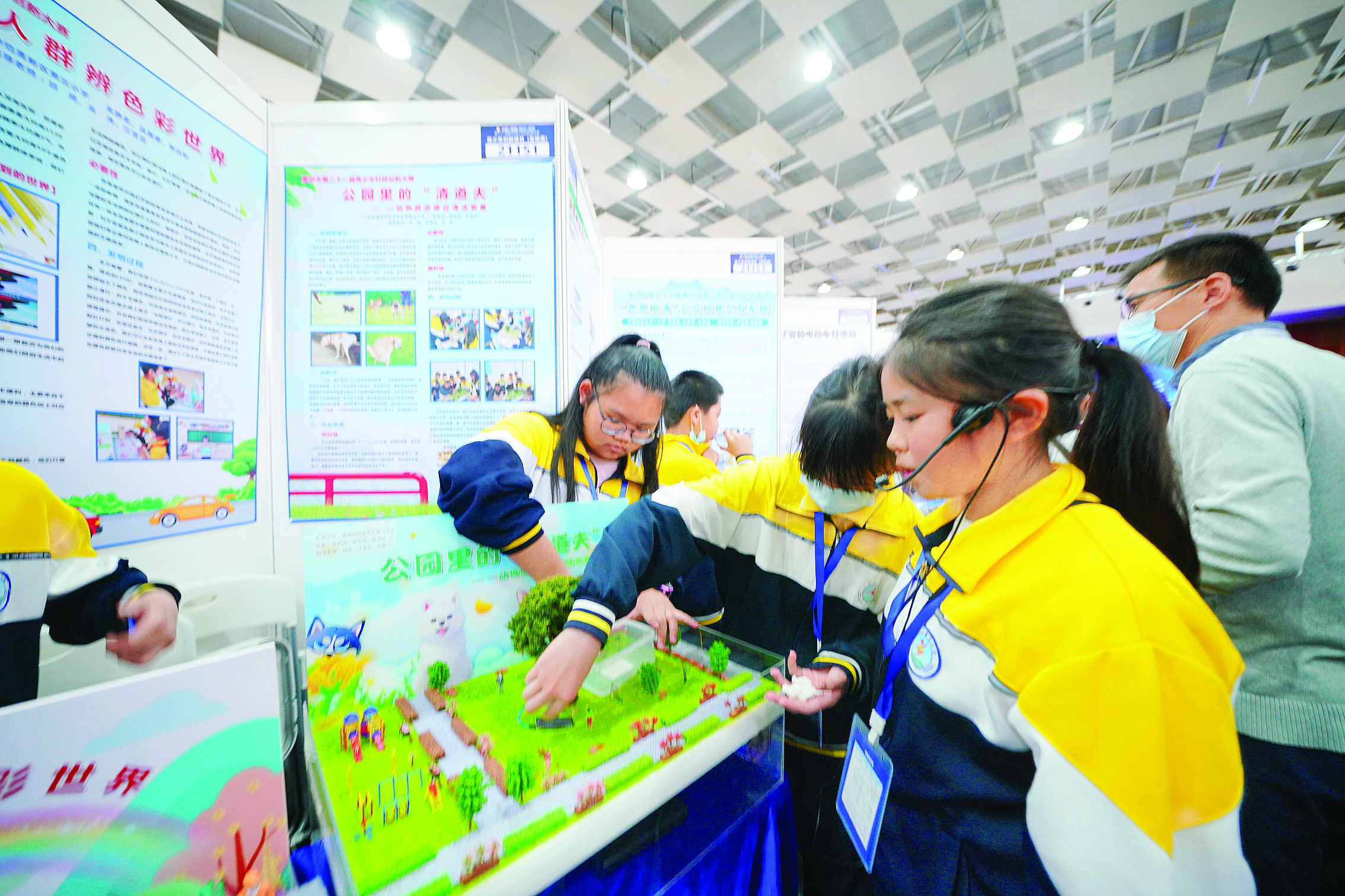 據(jù)了解,本次大賽分為青少年和科技輔導(dǎo)員兩大板塊,包括科技創(chuàng)新項(xiàng)目發(fā)明類、科技創(chuàng)新項(xiàng)目論文類、科技輔導(dǎo)員科教制作類等。在項(xiàng)目成果展示區(qū),參賽師生們紛紛秀出看家本領(lǐng),展示自己的科技創(chuàng)新成果、奇思妙想的實(shí)驗(yàn)裝置等,讓參觀者大開眼界。
