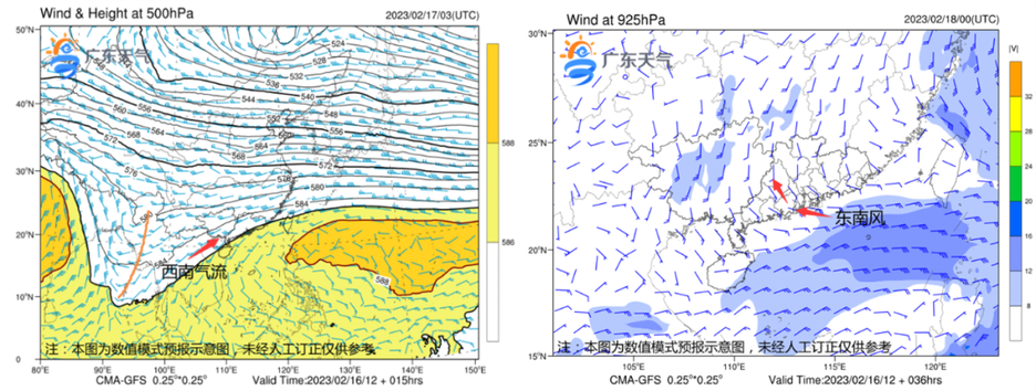 受南支槽前西南氣流