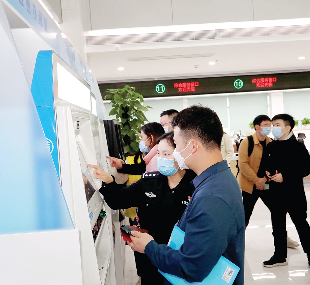 公安民警指引市民辦理“惠戶政”業(yè)務(wù)。