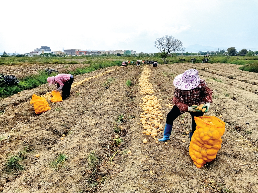農(nóng)戶在采收馬鈴薯。 惠州日報記者劉建威 通訊員湯倩 攝