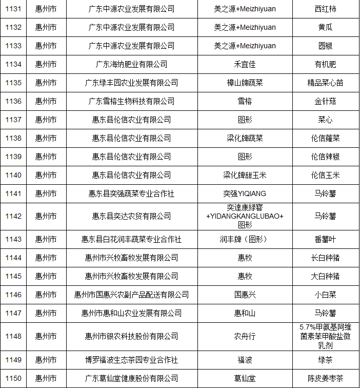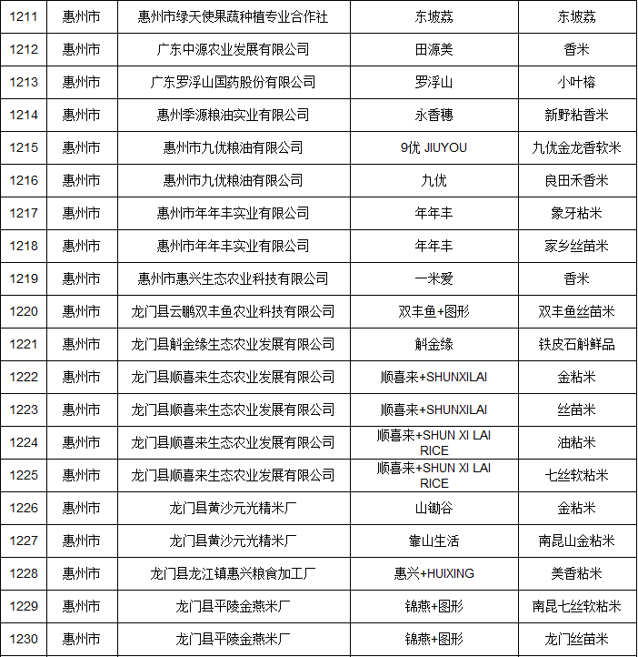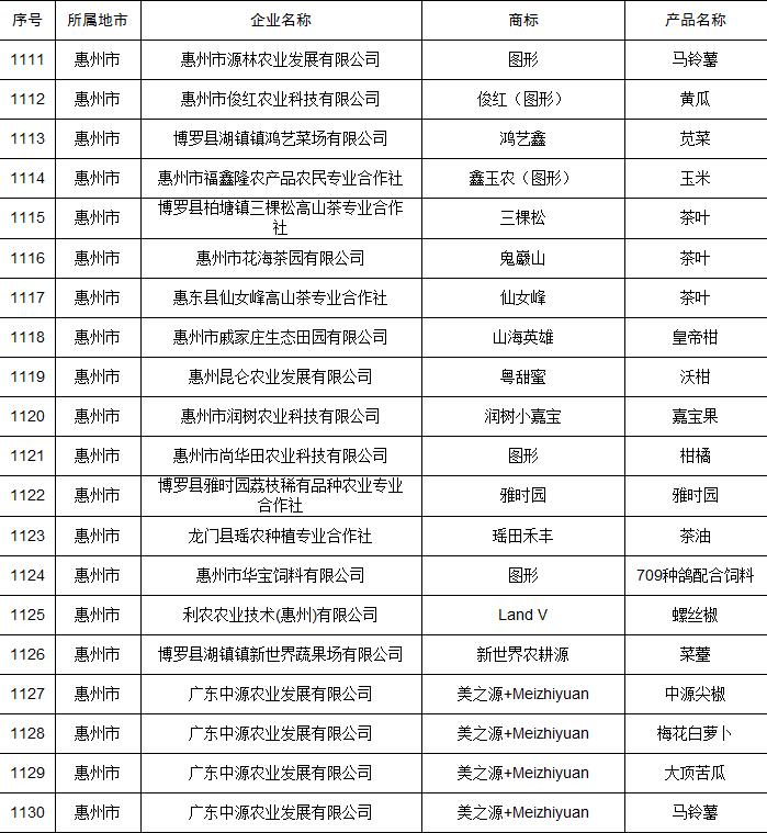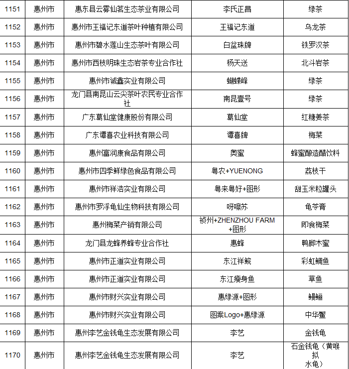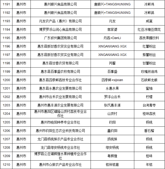2022年惠州入選 “粵字號”農(nóng)業(yè)品牌目錄