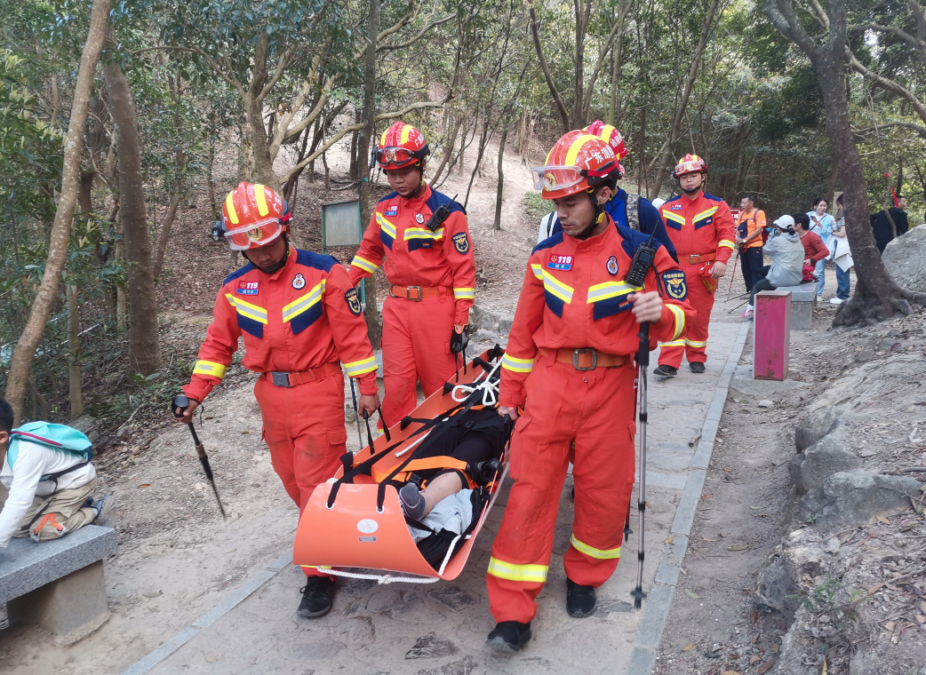 消防員到達(dá)白云障山腳時(shí),經(jīng)聯(lián)系報(bào)警人和詢問景區(qū)負(fù)責(zé)人得知,受傷人員為一名30歲左右的女子,在山頂站在石頭邊拍照時(shí)不小心摔倒掉落,左腳摔傷脫臼,情況比較危急,無法正行走。