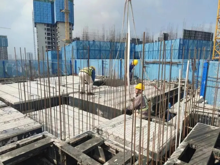 我市某住宅項目實施裝備式建筑,正在安裝預(yù)制混凝土構(gòu)建。