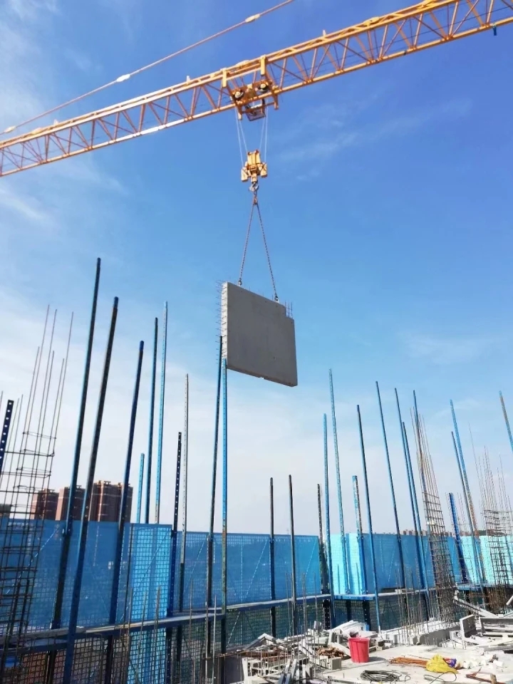 我市某住宅項目實施裝備式建筑,正在吊裝預(yù)制混凝土構(gòu)建。