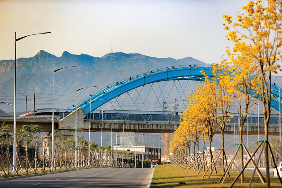 去年8月通車的金龍大道快速路即將迎來(lái)金色大道季節(jié)。金龍大道快速路自通車以來(lái),綠化帶種植的黃花風(fēng)鈴木陸續(xù)綻放,即將進(jìn)入盛花期,金龍大道將變成金色大道,成為我市城市的一道靚麗風(fēng)景。金龍大道快速路全長(zhǎng)約8.8公里,按一路一特色的景觀設(shè)計(jì),全線選用胸徑10厘米黃花風(fēng)鈴木865株,間距為10~12米。另外,道路沿線各功能區(qū)域還分別種植了非洲桃花心木、鳳凰木、宮粉紫荊等觀賞樹(shù)種,總綠化面積約18.83萬(wàn)平方米,每個(gè)季節(jié)都有花開(kāi),不僅是一條快速路,更是一條靚麗的景觀路。