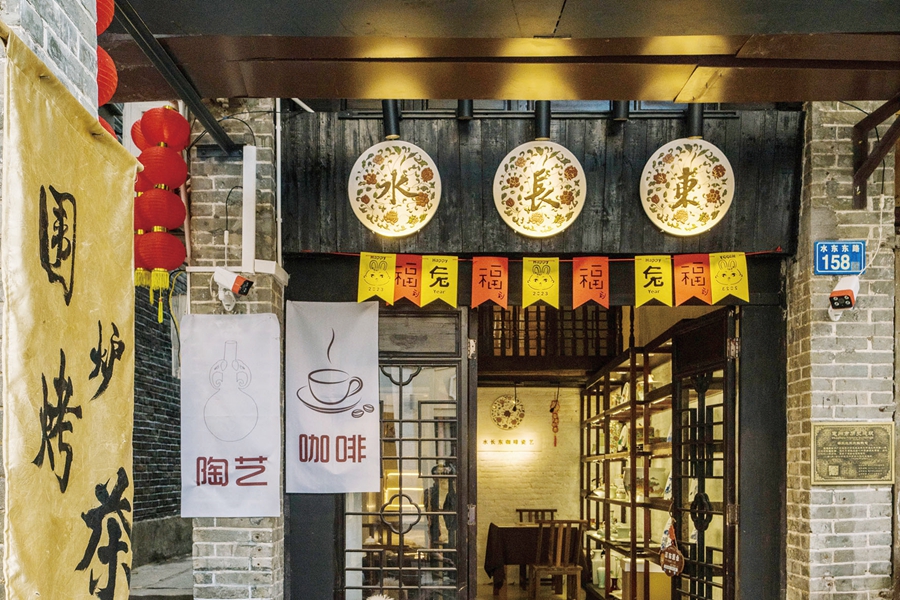 這家位于橋東水東東路158號的水長東咖啡瓷藝館,占地面積近150平方米,為民國騎樓建筑。得益于廣東歷史文化街區(qū)水東街的升級改造,房屋主人陳智揚(yáng)回流創(chuàng)業(yè),活化利用這幢老建筑,將其打造成為網(wǎng)紅打卡點(diǎn)。