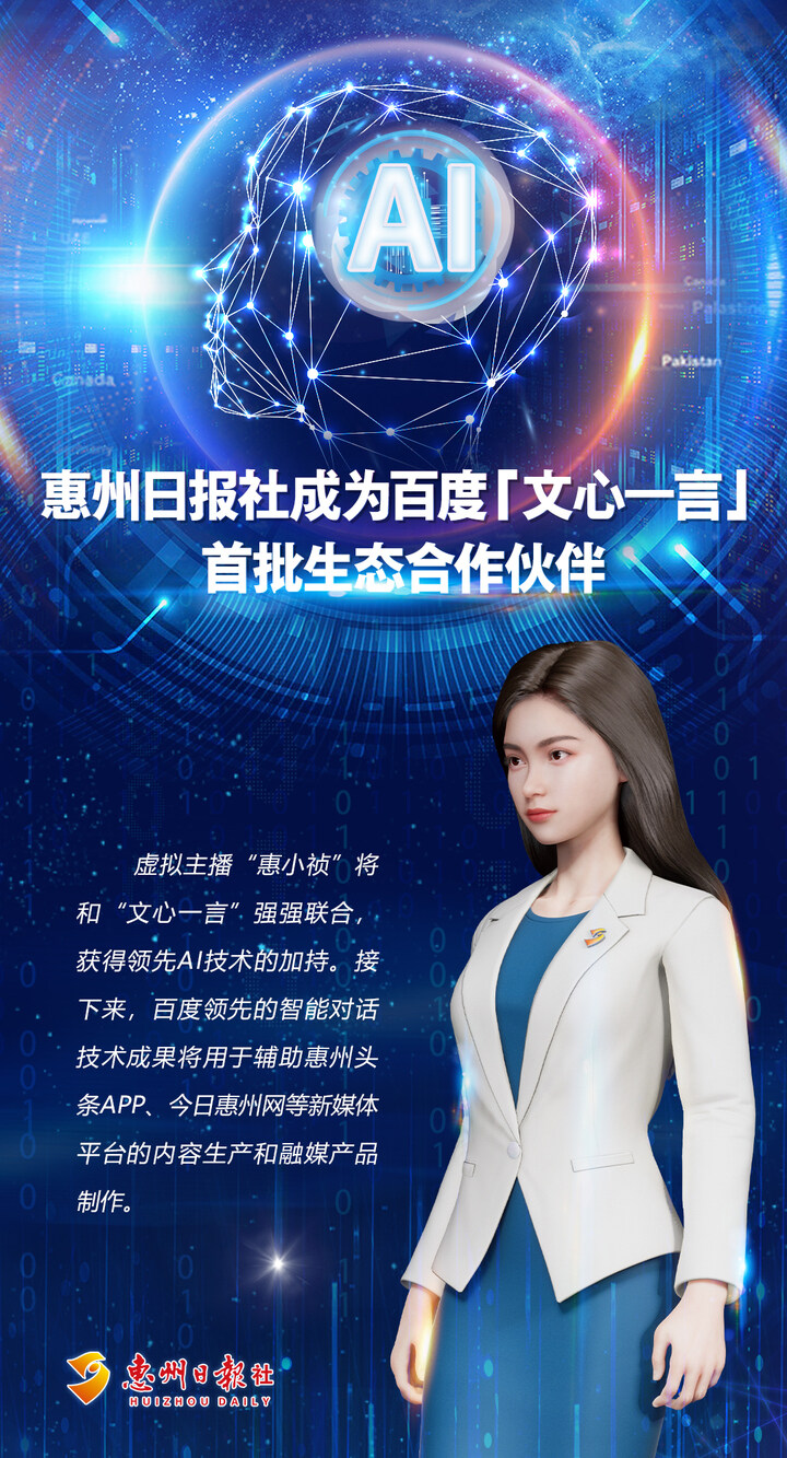 值得一提的是,惠州日報社虛擬主播“惠小禎”將和“文心一言”強強聯(lián)合,獲得領(lǐng)先AI技術(shù)的加持,把百度領(lǐng)先的智能對話技術(shù)成果廣泛應(yīng)用在融媒產(chǎn)品制作、新聞播報等領(lǐng)域。未來,惠州日報社將集成“文心一言”的技術(shù)能力,與百度在大數(shù)據(jù)、人工智能等多個領(lǐng)域深化合作,通過技術(shù)共享、培訓(xùn)賦能等方式,推進惠州日報社融媒轉(zhuǎn)型升級,提升惠州日報社在融媒體時代的競爭力,為惠州日報社各項產(chǎn)業(yè)事業(yè)發(fā)展探索無限可能。