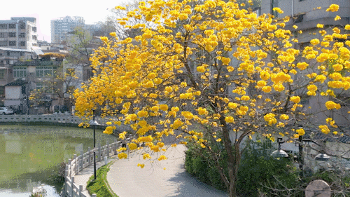 惠州迎來了提前盛開的黃花風(fēng)鈴木